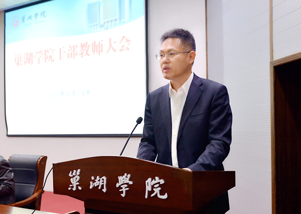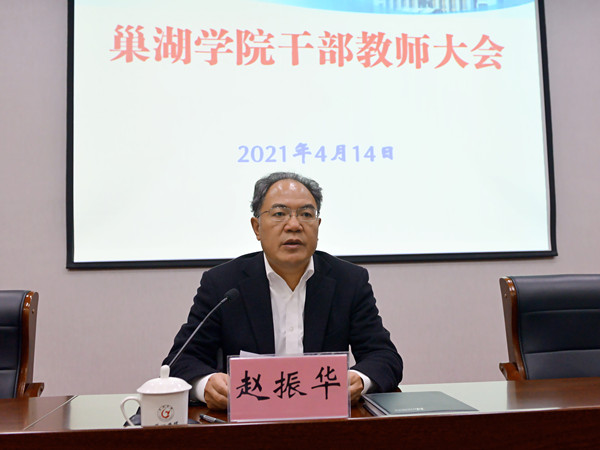 14日上午,学校在致知楼报告厅召开干部教师大会。省委第十三综合考核组组长、省教育厅厅长、省委教育工委副书记赵振华,省委第十三综合考核组副组长、省林业局副局长、党组成员张令峰以及考核组其他成员出席会议。校领导、机关部门领导成员、二级学院党政正职(含主持工作的副职)、教师代表(省级以上“两代表一委员”、民主党派市级以上主委、学校教代会执委、正高以上职称人员)、学生代表等参加会议。会议由校党委书记周峰主持。