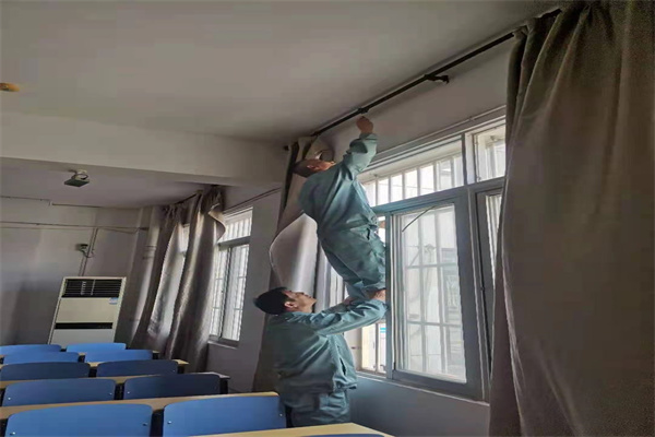 咚咚咚……刺耳的钻孔砸墙声,想必是博学楼维修改造,建设强弱电控制室,规范强弱电接取与网络管线分布,安装网络桥架,翻新办公区域,增添消防设施,为师生打造良好教育教学与行政办公氛围。同时,开展教学楼宇设施检修、灯具增装、空调过滤网清洗与在校服务企业设施设备清洁维修,保证节后全新上线。