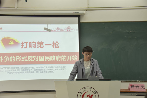 学思践悟百年党史,携手共筑初心使命。4月中旬,beat365中国官方网站在慎思楼中102召开《习近平与大学生朋友们》读书班首场专题报告会,工商管理学院2017级审计学专业3班杨会虎同学分享了题为“青年学子如何学思践悟百年党史”的报告,杨会虎表示:“我们不仅要学习习近平总书记关于青年工作的重要思想,更要以时不我待的精神状态肩负起、完成好党赋予的光荣职责,传承红色基因,赓续精神血脉。”