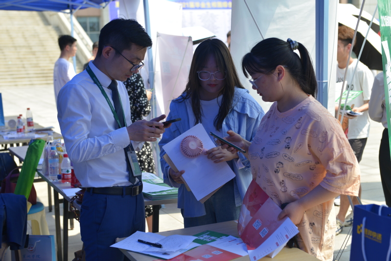 稳就业,促民生。为给毕业的同学们提供优质岗位,经学院就业工作领导小组充分讨论决定,工商管理学院于2021年5月10日上午8点在图书馆喷泉广场开展工商管理学院双选会,校领导周峰、祝家贵、徐柳凡,学工部副部长华紫武、郭凤英,工商管理学院党委书记柳洪琼、院长罗发海、党委副书记黄春芳、副院长陶有田来到现场参与双选会,他们深入会场与用人单位和求职学子亲切交谈,了解招聘求职情况,对本次双选会组织和实施工作给予了充分肯定。