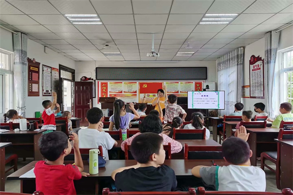 阮爱民一行深入童坛村教学点课堂,学生认真听讲、师生互动频繁,学习氛围浓厚活泼。课堂上,阮爱民与孩子们亲切互动,鼓励他们好好学习、健康成长,将来成为对国家和社会有用的人。课后,阮爱民一行向孩子们捐赠了学习用品。