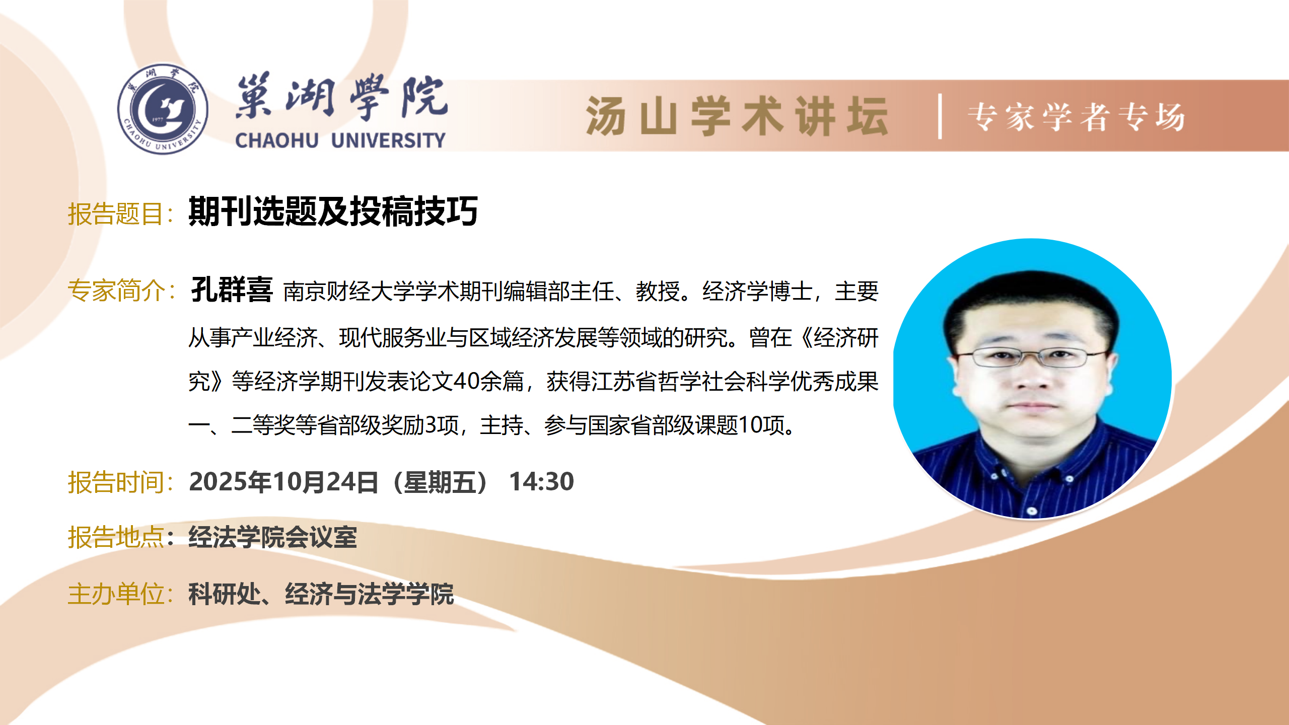 10月24日:南京财经大学学术期刊编辑部主任孔群喜教授讲座