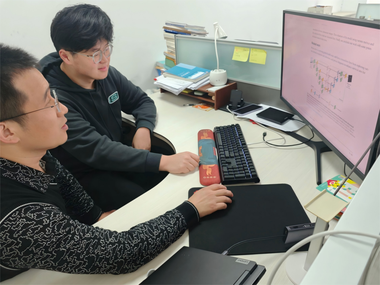 备赛期间,指导老师彭兴全程参与、倾力相助,从项目选题、技术路线到方案打磨,彭兴始终与学生们并肩作战。“彭老师亦师亦友,不仅在技术上给予专业指导,更在关键时刻帮我们把握方向、坚定信心。”李然天回忆道。