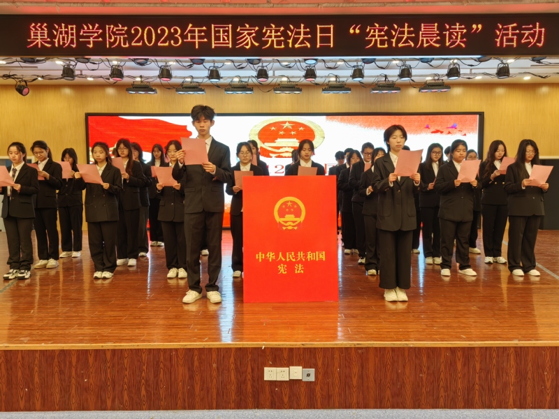 12月3日上午,组织学生在艺术楼报告厅开展“宪法晨读”活动,同学们在庄严的法律条文中感悟宪法精神,在朗朗的诵读声中体会宪法权威、感受宪法尊严。
