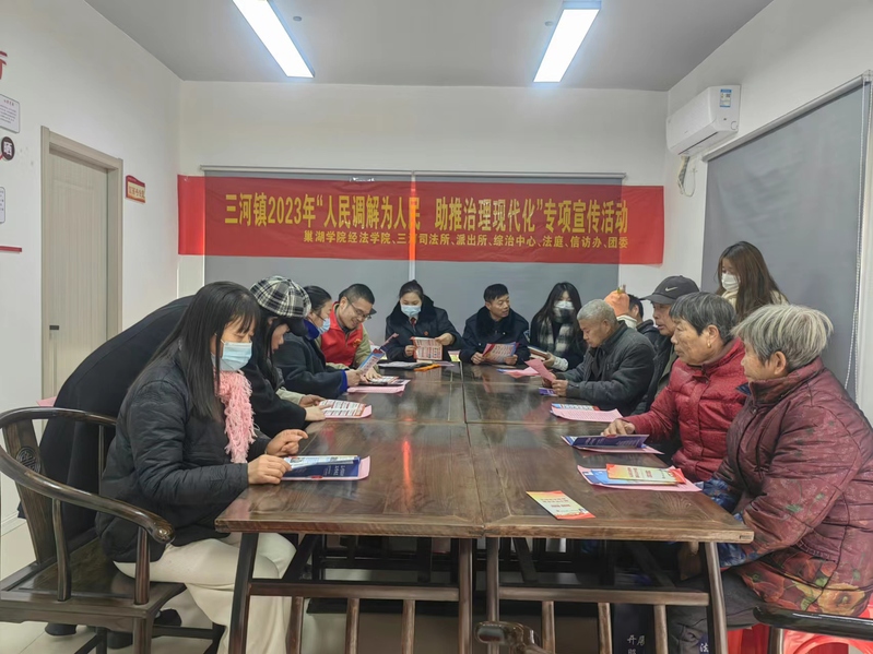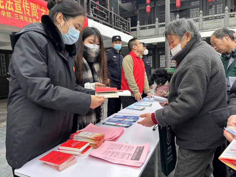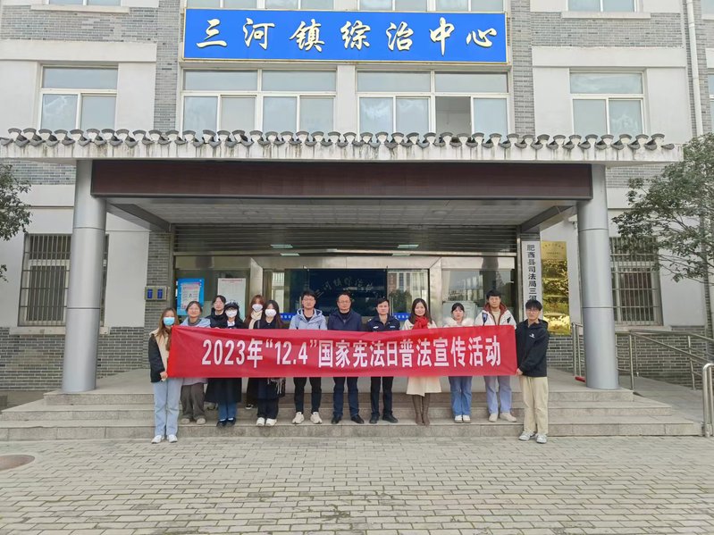 12月4日,beat365中国官方网站一行赴肥西县三河镇联合开展宪法宣传教育活动,双方共同为平安三河校地共建室揭牌并召开座谈会。组织专业教师、学生党员、学生干部前往三河镇万年台景区、三河镇中心学校和二龙家园(百姓评理说事点)等地进行宪法宣传,向游客及群众发放宪法宣传品及相关法律法规宣传折页,现场解答群众法律咨询,面向学生开展专题讲座,讲述生活中的宪法。