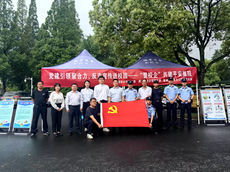 为充分发挥基层党组织战斗堡垒作用,以党建引领推动校园安全治理,5月16日上午,保卫工作部党支部、半汤派出所党支部、巢湖联通党支部联合开展“党建引领聚合力,反诈宣传进校园——‘警校企’共建平安巢院”主题活动。