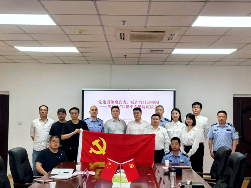 座谈会在图书馆第三会议室举行,保卫工作部党支部书记赵子翔首先对此次支部共建活动表示肯定,他指出这种“资源共享、优势互补”的创新模式为校园安全治理工作打开了新局面;半汤派出所党支部书记孔子豪在发言中表示派出所将始终把校园安全放在重要位置,通过“警力下沉、普法前置”等具体举措持续深化警校联动机制,巢湖联通党支部书记杨磊从企业角度出发,提出将充分发挥技术优势,重点在反诈大数据预警、网络安全教育等领域为学校反诈工作提供支持;随后与会人员围绕校园反诈主题结合工作实际,就联防联控机制建设、智慧安防等方面,提出了许多建设性意见。