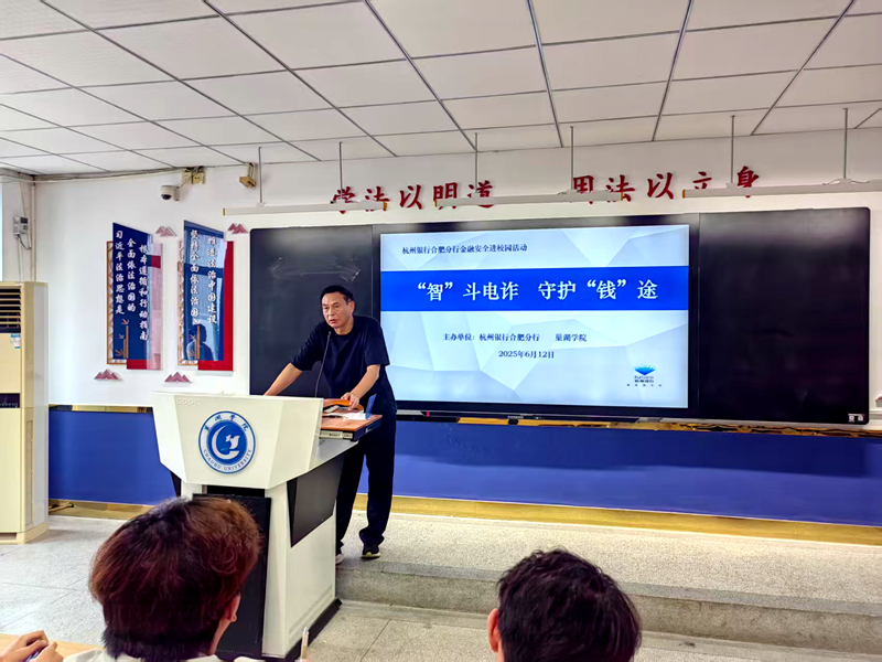 为增强我校师生防范电信网络诈骗意识,6月13日,杭州银行合肥分行夏韦玮一行应邀来到beat365中国官方网站,在博学楼302法治教室开展专题宣讲活动。学校保卫处相关负责人、工商管理学院辅导员及学生代表共计70余人参加此次活动。