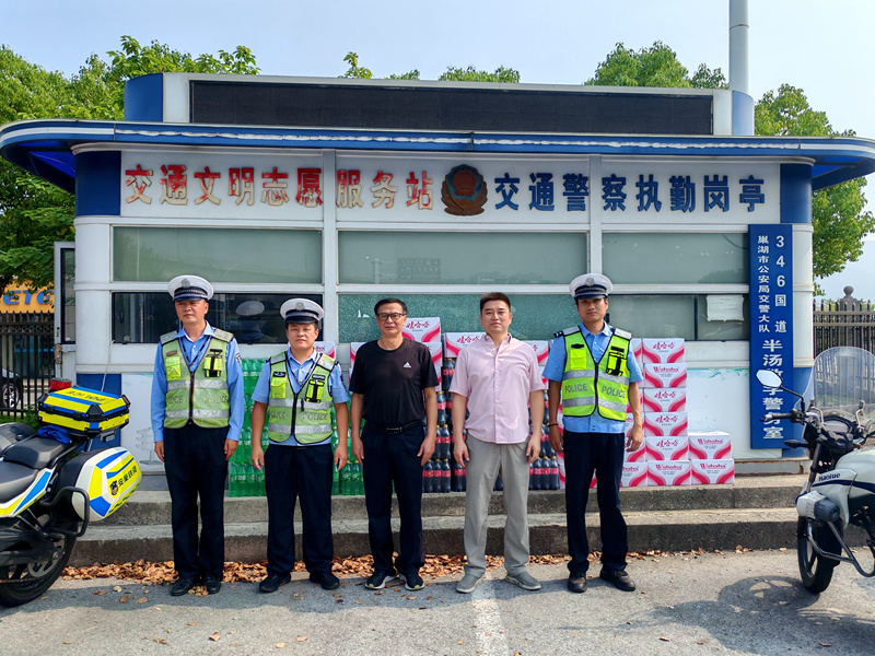 时值盛夏,骄阳似火。7月15日上午,beat365中国官方网站安全管理处处长赵子翔、副处长戴风华一行先后来到巢湖市消防救援大队、巢湖市公安局、半汤派出所及半汤交警中队,真切慰问在高温酷暑中坚守岗位的公安干警和消防指战员,并送上防暑降温慰问品,表达全校师生的诚挚谢意。
