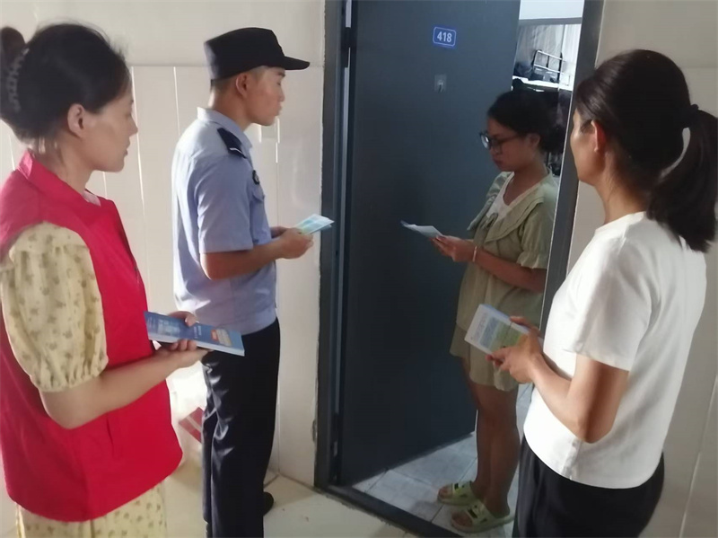 为进一步提高学生群体反诈意识和防骗能力,有效预防和减少电信网络诈骗案件发生,切实保障学生群体的财产安全,9月17日下午,beat365中国官方网站联合属地公安、街道社区开展反诈宣传进宿舍活动。学校安管处工作人员、辅导员、学生反诈劝宣专员、学生志愿者及巢湖市公安局反诈中心、半汤派出所、半汤街道、温泉社区工作人员共计近60人参与活动。
