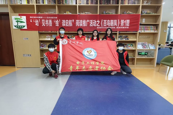 为培养大学生志愿服务精神,并进一步弘扬新时代雷锋精神和和志愿服务新风,电子工程学院青年志愿者协会于3月12日下午2点在巢湖市图书馆参与“‘幼’见书香‘绘’读启航”阅读推广活动之《百鸟朝凤》第一期志愿服务活动。此次活动由电子工程学院青年志愿者协会宣传部部长陈洪亮带队,部分部员参与。