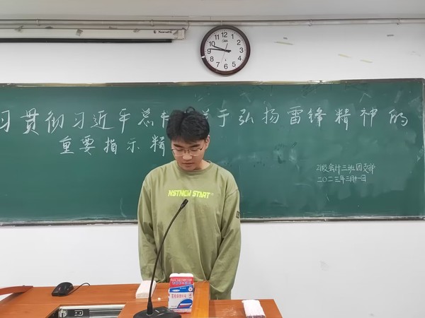 为深刻把握雷锋精神的时代内涵,发挥雷锋精神在大学生中的模范带头作用。21级会计学专业三班于3月11日下午在博学楼315教室召开学习贯彻习近平总书记关于弘扬雷锋精神的重要指示精神会议。本次会议由思政委员段非凡主持,21级会计学专业三班全体人员参加。