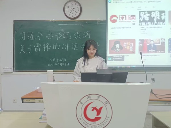 首先,李琼表示,习近平总书记的重要指示,充分肯定60年来学雷锋活动的显著成效,深刻阐明雷锋精神的永恒价值,对新征程上更好弘扬雷锋精神提出明确要求。我们要深入学习领会、抓好贯彻落实,进一步开展好学雷锋活动,把雷锋精神代代传承下去,为全面建设社会主义现代化国家、全面推进中华民族伟大复兴贡献更多属于青年的智慧与力量。随后,李琼带领班级同学观看有关习近平强调雷锋的讲话相关视频,同时,李琼就视频中所提到的内容对同学们进行简单提问,并对同学们做出的回答表示肯定。最后,李琼表示毛泽东同志发出“向雷锋同志学习”号召60年来,学雷锋活动蓬勃开展、持续深入,雷锋精神广为弘扬、赓续传承,激励着一代又一代人忠诚于党、奉献祖国、服务人民。特别是党的十八大以来,习近平总书记对弘扬雷锋精神作出一系列重要论述,指导推动新时代学雷锋活动不断拓展内容、创新形式、丰富载体,涌现出一批又一批雷锋式先进集体和模范人物,为新时代伟大变革注入不竭精神动力,作为当代共青团员,我们要继续植根于雷锋精神,不断延续优秀品格,更好的服务社会,服务人民。