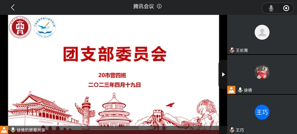 进一步促进班级团支部各项工作的顺利开展,20级市场营销四班于4月19日晚在线上召开团支部委员会。本次会议由团支书徐倩主持,20级市场营销四班团支部全体成员参加。
