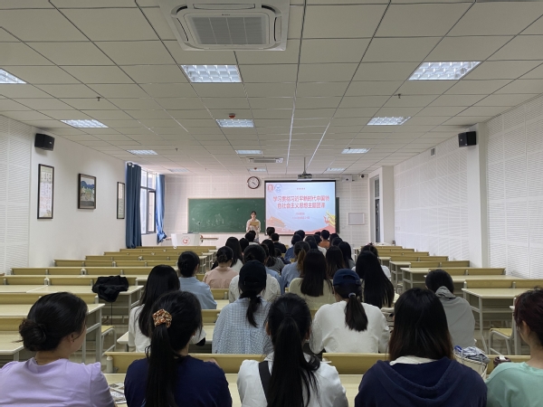 首先,徐倩简单介绍此次会议的主要内容和相关流程。接着,她说道,我们要深入学习贯彻习近平总书记在主题教育工作会议上的重要讲话精神。随后,她说道,同学们要坚持用习近平新时代中国特色社会主义思想凝心铸魂、筑牢根本,为奋进新征程、建功新时代做出一份属于自己的贡献。最后,她希望同学们认真做好习近平新时代中国特色社会主义思想的学习宣传。