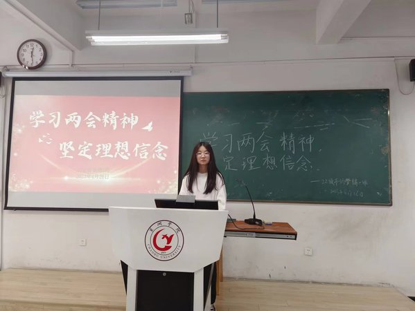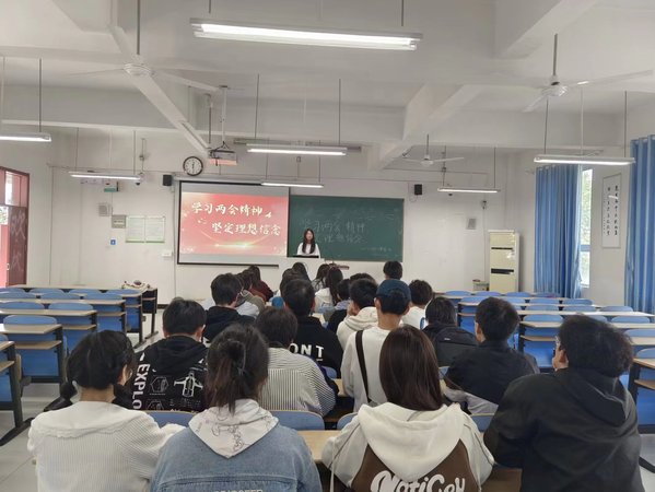 为贯彻落实全国两会精神,深入学习习近平新时代中国特色社会主义思想,切实增强团员青年的政治责任感和历史使命感,22级市场营销一班于4月26日中午在慎思楼202教室召开了“学习两会精神,坚定理想信念”主题团日活动。本次活动由团支书李雯娜支持,辅导员许沙指导,22级市场营销一班全体成员参加。