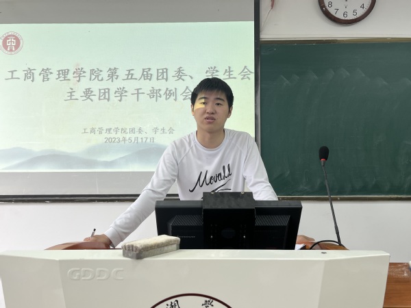 为增强学生干部的工作意识,落实学院的工作计划,加强各部门之间的配合。工商管理学院于5月17日中午在博学楼303教室召开主要团学干部例会。本次会议由学生会主席团成员甘俊杰主持,全体团学干部参加。