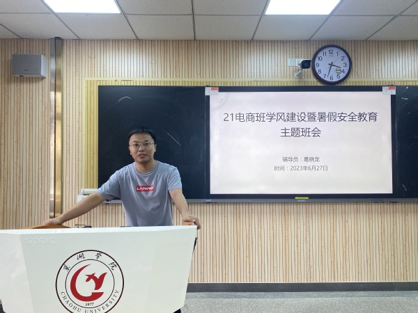 首先,葛晓龙强调同学们要关心自己的学习成绩,规划好自己的学习计划,提前为未来的毕业、就业做准备。接着,他给同学们布置了一些暑假任务,如:查询自己大学两年里的学习成果并规划好大三大四的学习计划、在图书馆借阅书籍暑假期间阅读等。随后,他提醒同学们暑假期间注意交通安全,谨防电信诈骗,防溺水。并在放假回家前打扫好寝室卫生、关闭寝室电源,营造干净并安全寝室环境。最后,他希望同学们要明确自己的学业目标,规划好自己未来的道路。至此,本次主题班会圆满结束。