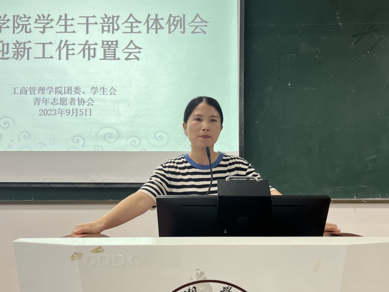 为确保新学年迎新工作的顺利开展,营造良好的校园风貌,工商管理学院于9月5号中午在慎思楼中101教室召开学生干部全体例会暨迎新工作布置会,本次会议由团委书记许沙主持,全体学生干部参加。