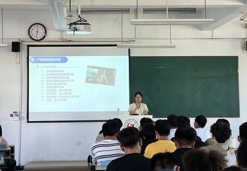 为了加强同学们的安全意识,储岚霖通过电影《孤注一掷》中的事例,叮嘱同学们筑牢安全防线,时刻预防电信网络诈骗,保护个人财产安全;同时提醒大家文明上网,做清朗网络空间的捍卫者。