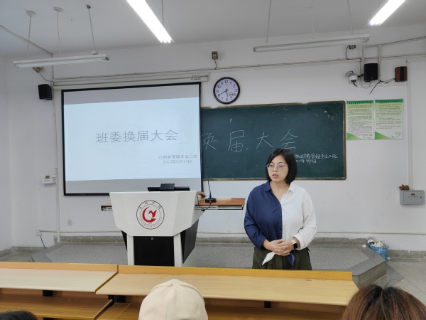 首先,辅导员任洁老师希望同学们培养相信自己的能力,坚信自己的努力可以为班级作出贡献,任洁老师说明本次班委换届秉持公平公正的原则,结合同学们以及辅导员的意见共同决定。随后,她表示,在过去一年里,班委成员在辅导员和各位班委的带领下表现优良,建设了一个充满活力的班集体,使班集体能够保持一个积极向上的姿态发展。最后,任洁老师希望每一位班委在自己的岗位都能够尽职尽责,希望在下一年中能够继续发扬自己工作中的优势、认真完成自己的本职工作并相互监督,最终经过竞选产生了新一届的班委成员。