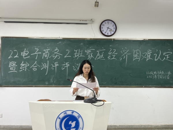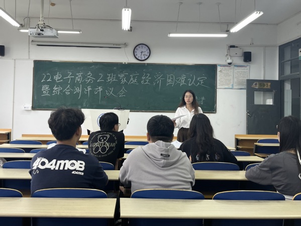 为推动家庭经济困难认定和综合测评、奖学金评选工作的正常进行,22级电子商务二班于9月21日下午在博学楼503教室召开评审会议。本次会议由辅导员储岚霖主持,22级电子商务二班评议小组全体成员共同参加。