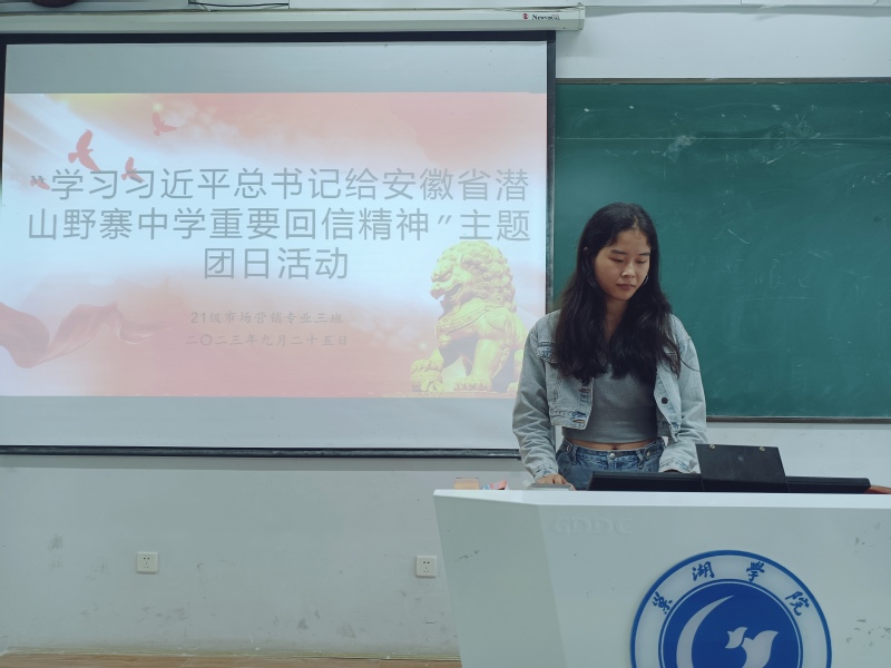 为深入学习贯彻党的二十大精神,加强同学们对习近平新时代中国特色社会主义思想的理解,21级市场营销专业三班于9月25日在慎思楼中103教室召开“学习习近平总书记给安徽潜山野寨中学重要回信精神”主题团日活动。此次活动由辅导员许沙指导,团支书王婷婷主持,21级市场营销专业三班全体成员参加。