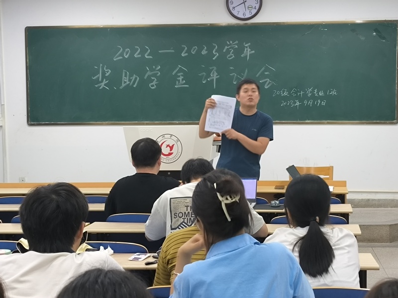 为充分体现奖助学金评选工作“公平、公开、公正、优中选优”的原则,凝聚榜样力量,发挥青年引领作用,推动学风建设,20级会计一班于9月19日下午在博学楼510教室召开了奖助学金评议会。本次会议由辅导员刘国主持,20级会计一班奖助学金评议小组全部成员参加。