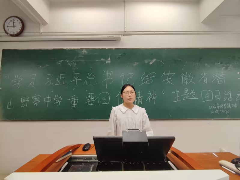 首先,陈玉婷带着同学们学习了习近平总书记给安徽省潜山野寨中学新考取军校同学们的回信精神,习近平总书记在回信中对考取军校的同学表示祝贺与勉励,习近平总书记的回信不仅是对潜山野寨中学考取军校同学肯定,更是对广大青少年的殷切期盼。随后,陈玉婷邀请几位同学对习近平总书记给安徽省潜山野寨中学新考取军校同学们的回信精神发表的感悟,同学们纷纷表示习近平总书记的回信振奋人心,我们青年学生一定不负习近平总书记的期望,珍惜学习时光,努力成为高素质人才。最后,陈玉婷表示推进强军事业,需要一批又一批有志青年接续奋斗,我们也应广泛学习国防知识,为建设社会主义现代化贡献力量。
