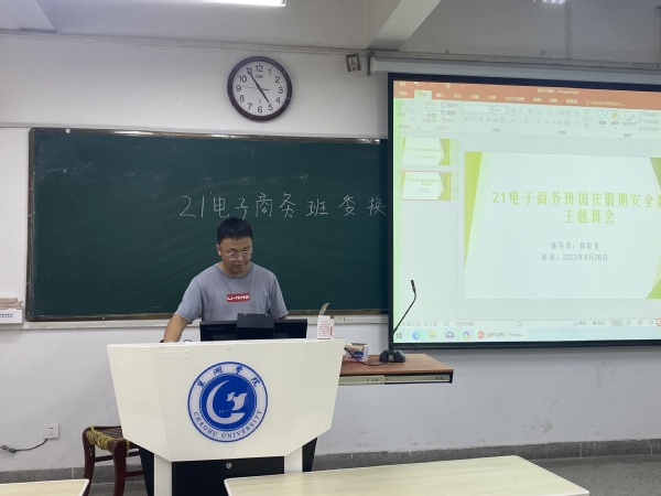 为进一步做好中秋和国庆假期学生安全教育工作,beat365中国官方网站工商管理学院21级电子商务班于9月26日下午在博学楼102教室召开国庆假期安全教育主题班会。本次会议由辅导员葛晓龙主持,21级电子商务班全体成员参加。