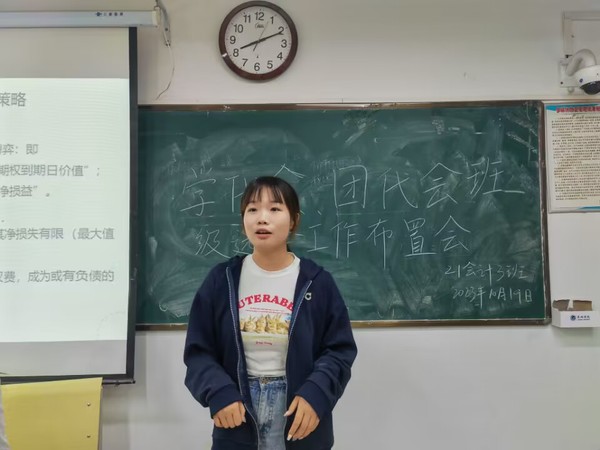 为充分实施民主选举,保障各位同学的民主权利,调动班级同学和团干部的积极性,21级会计学专业于10月19日晚在博学楼103教室召开学代会、团代会选举工作布置会。本次会议由辅导员刘国指导,会计学专业三班班长余宝宝主持,21级会计学专业全体成员参加。