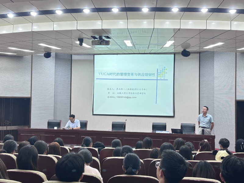 为帮助学子深入理解时代变革、前瞻未来行业发展趋势,提升在复杂环境下的专业认知与职业规划能力,2025年9月18日,工商管理学院邀请安徽工程大学经济与管理学院院长龚本刚教授,为同学们带来了一场题为“VUCA时代与供应链韧性”的专题讲座。活动由工商管理学院院长陶有田主持,学院200余名学生参加了报告会。