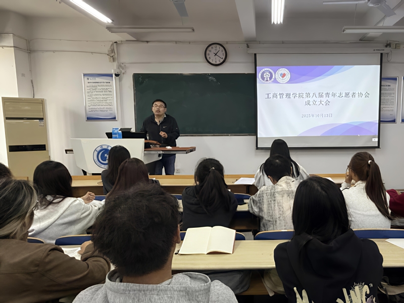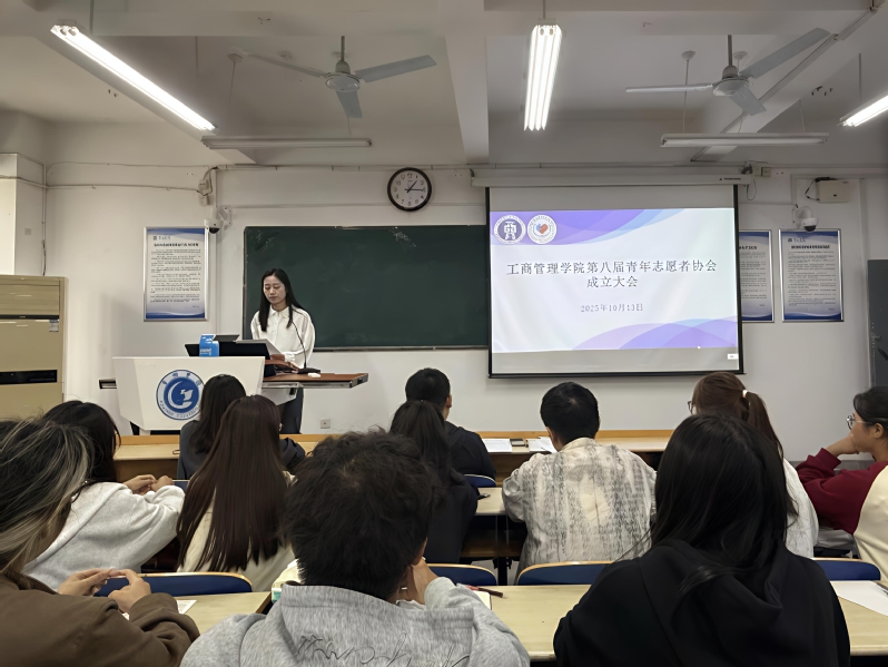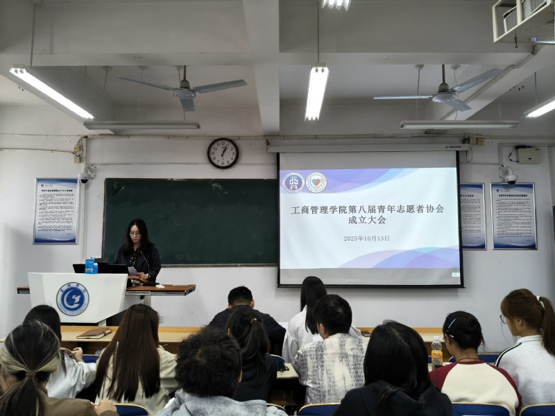 为更好服务同学,推进志愿服务事业规范化,弘扬“奉献、友爱、互助、进步”的志愿精神,工商管理学院第八届青年志愿者协会于10月13日中午在博学楼202教室召开成立大会。本次会议由工商青协会长武城安主持,学院党委副书记何冬冬、团委书记袁晓琳、团委副书记储岚霖出席。