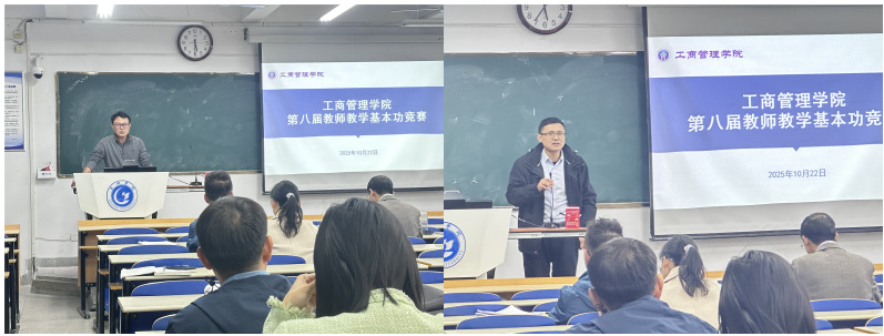 为锤炼青年教师教学基本功,提升课堂教学质量,工商管理学院于10月22日举办第八届教师教学基本功竞赛。本次竞赛首次规定仅可使用传统板书进行教学展示,全面考察教师的教学设计能力与课堂表达功底。全院13名新进青年教师参赛,本次竞赛由副院长赵祺主持,学院教学系系主任及专业负责人余雷、吴克平、甘泉、严爱玲以及教学督导沈菲飞担任评委,学院党委书记管超、院长陶有田、副院长沈爱忠以及其他教师全程参与观摩。