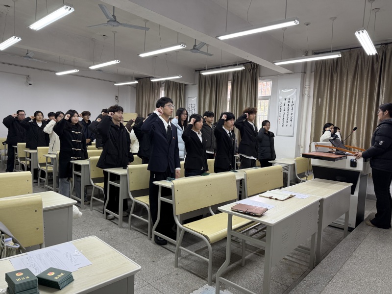 在庄严的氛围中,团委工作人员为新团员依次颁发团员证并佩戴团员徽章,熠熠生辉的团徽象征着责任与使命,让每一位新团员深切感受到身份的转变与光荣。随后,全体新团员在沈晴雨的带领下,进行入团宣誓。“我志愿加入中国共产主义青年团,坚决拥护中国共产党的领导……”铿锵有力的誓言回荡在会场,字字千钧,既彰显了新团员们坚定不移跟党走、为共产主义事业奋斗终生的坚定决心,也凝聚了新时代青年的理想与信念。
