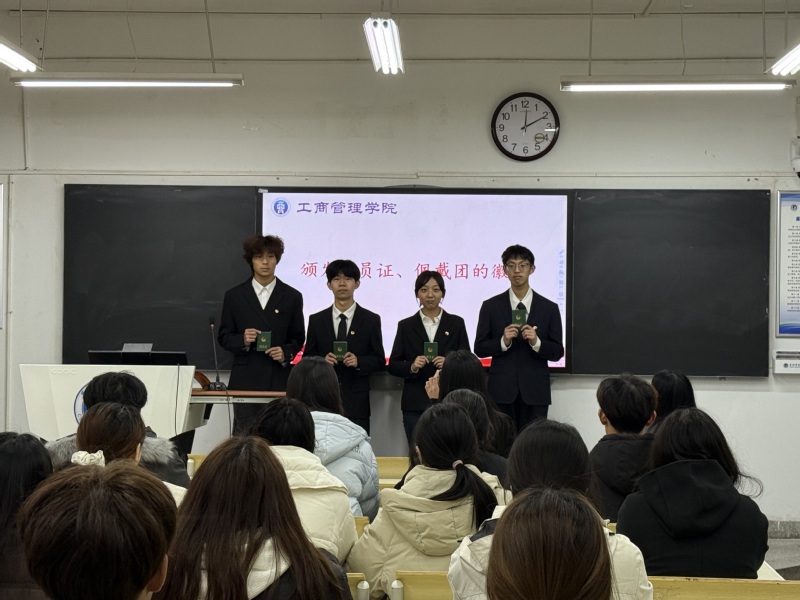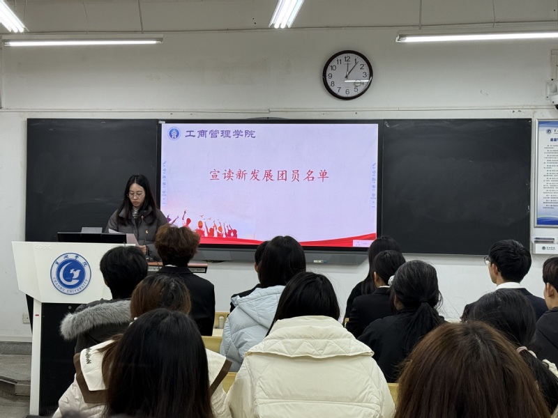为深入强化青年团员思想引领,持续壮大共青团组织力量,夯实团组织建设根基,工商管理学院于12月17日在博学楼103教室隆重举行2025年秋季学期新发展团员入团仪式。学院团委书记袁晓琳、团委副书记储岚霖出席仪式,学院团委组织部负责人及本学期全体新发展团员参加活动,仪式由团委学生兼职副书记沈晴雨主持。