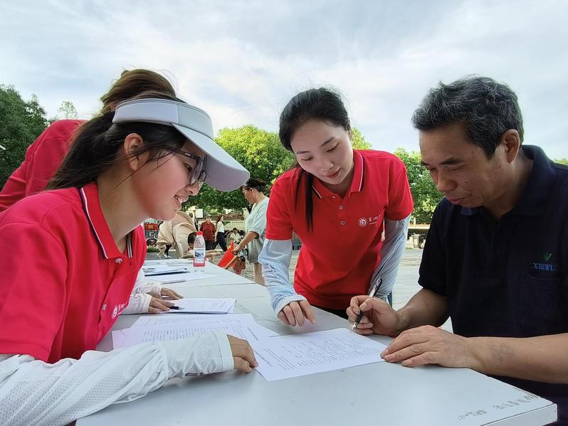 实践团采用“定点+走访”模式,通过在古镇人流密集区设立展台、分组走访商户与游客等方式,重点围绕公众环保法律认知、古镇生态现状和相关政策落实情况以及改进意见和建议等内容进行问卷调研。活动中,团队成员耐心引导群众填写问卷,主动询问他们在日常生活中遇到的环境问题,为后续普法和撰写调研报告积累一手数据,助力将“民意温度”转化为“政策力度”。