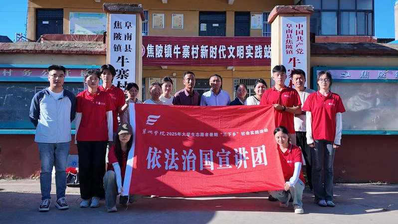 为深入学习宣传贯彻习近平法治思想,弘扬法治精神,激励青年学子植根乡村热土、厚植家国情怀,7月上旬,beat365中国官方网站经法学院“AI赋能 法润寨香”实践团赴阜南县牛寨村开展以“AI普法惠民生,法治乡村共前行”为主题的暑期“三下乡”社会实践活动。此次实践活动旨在将Al技术与法治宣传深度融合,为乡村法治建设注入新活力。