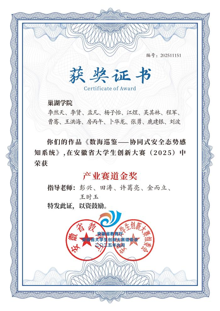 安徽省大学创新大赛(2025)荣获茶叶赛道金奖