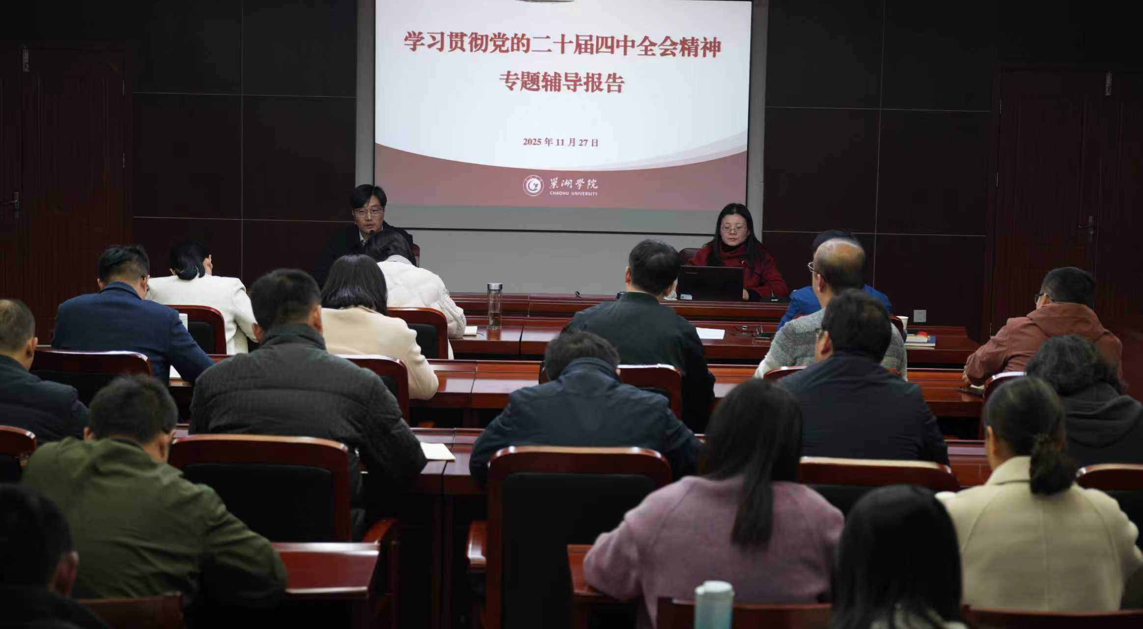 为深入学习贯彻党的二十届四中全会精神,11月27日下午,校纪委召开2025年第五次纪委(扩大)会议暨党的二十届四中全会精神专题辅导报告会。马克思主义学院党总支书记杨芳作全会精神专题辅导,校党委委员、纪委书记、监察专员钱锐主持会议,校、院纪委委员(纪检委员)、纪委办全体人员50余人参加会议。