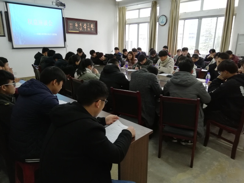 12月19日中午,机械工程学院权益部在致知楼二楼团总支会议室召开座谈会,校学生会主席李凯和校维权组成员、机械工程学院和电子工程学院学生会权益部成员、机械工程学院各班生活委员、班干代表、学生代表参加会议,会议由机械工程学院学生会权益部部长邓锐主持。