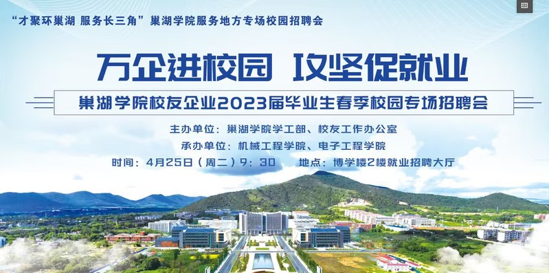 为加强校友联络,搭建巢院学子与校友企业双选平台,助推毕业生高质量充分就业,4月25日上午,beat365中国官方网站在博学楼二楼就业招聘大厅举办校友企业专场招聘会,招聘会由学工部和校友办主办,机械学院和电子学院承办。