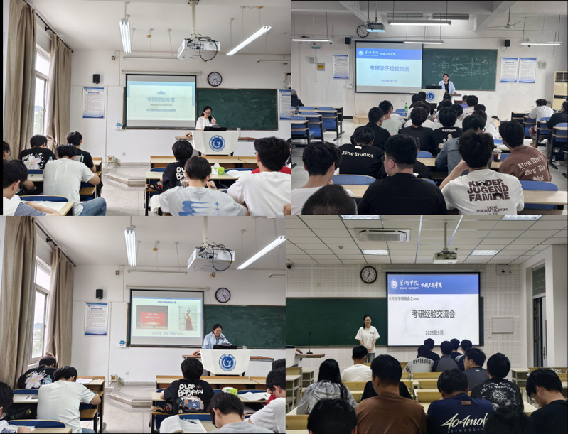 开展一次经验交流分享。学院邀请考研录取的毕业生分批次走进低年级班级,把考研成功的经验分享给学弟学妹们。