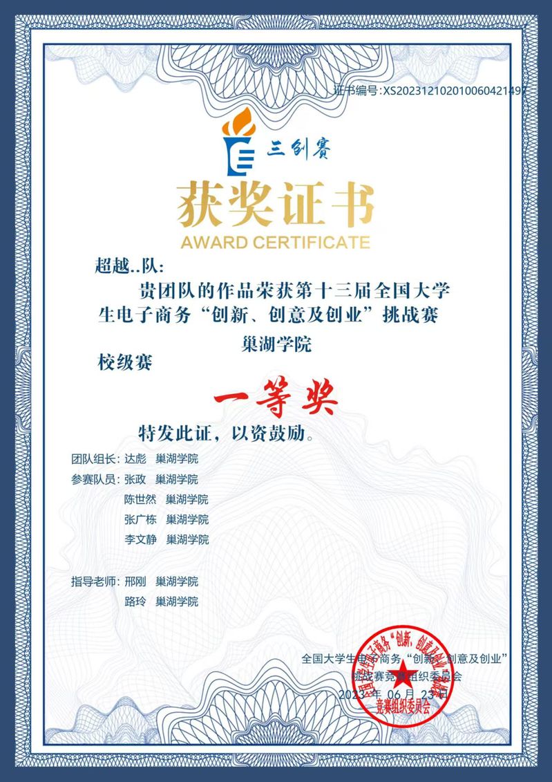 他不仅重视知识的积累,还积极参加各类学科竞赛和校园活动,在实践中锻炼自己。他踊跃参与校内组织的比赛和校社团活动,凭借出色的表现和团队协作精神,与同学们齐心协力,赢得了诸多荣誉。他曾获得校级奖学金,在“挑战杯”大学生课外学术科技作品竞赛、全国大学生电子商务“三创赛”、“西门子杯”中国智能制造挑战赛、“互联网 +”大学生创新创业大赛等赛事中都斩获佳绩。这些荣誉不仅是对他能力的肯定,更是他不断努力和拼搏的见证。