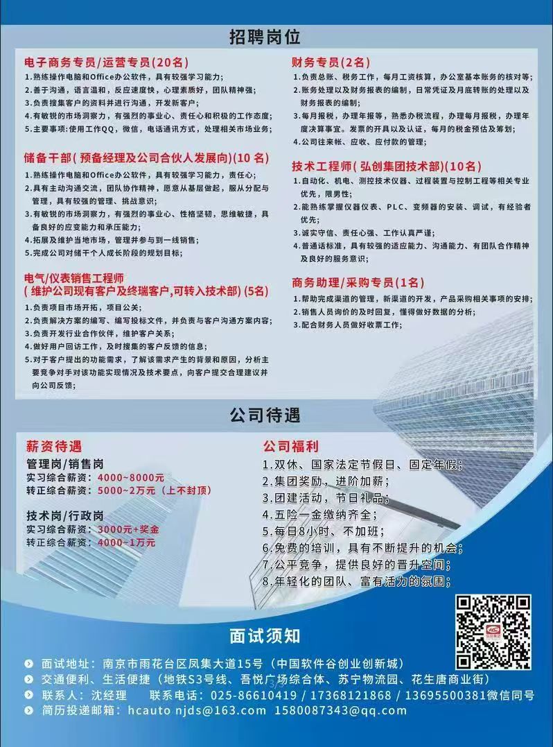【招聘简章】弘创集团南京德昇自动化设备有限公司