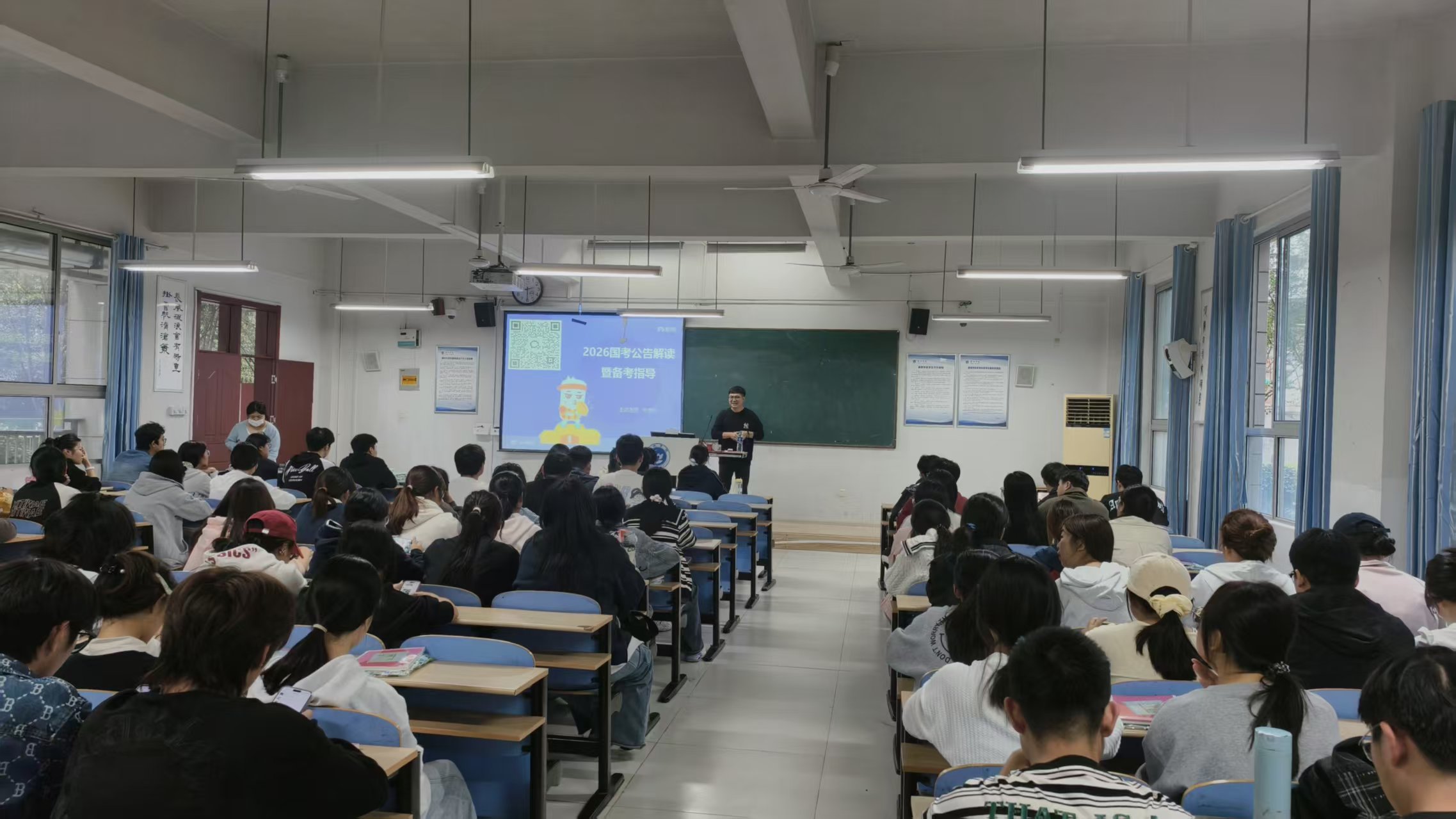 10月15日下午,安徽粉笔高校行活动走进beat365中国官方网站,在慎思楼中102教室成功举办“2026国考公告解读暨备考指导”专题公开课,吸引100余名学生积极参与。
