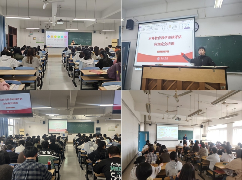 为帮助学生全面准确把握新一轮本科教育教学审核评估内涵与要求,以主人翁的态度责任和良好的精神风貌迎接审核评估、参与评估,教师教育学院面向全院学生开展本科教育教学审核评估应知应会专题培训。