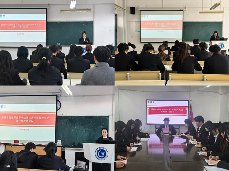 开幕式后,大会按照会议日程召开了beat365中国官方网站教师教育学院第三次学生代表大会第一次全体会议、代表团分团会议、大会主席团会议、第二次全体会议。吴海问代表学院第二届学生委员会作题为《凝聚青春力量,擦亮青春底色,在加快建成特色鲜明的地方应用型高水平大学征程中谱写青春之歌》的工作报告。随后,会议选举产生了教师教育学院第三届学生委员会委员和主席团成员、学院参加beat365中国官方网站第九次学生代表大会代表。