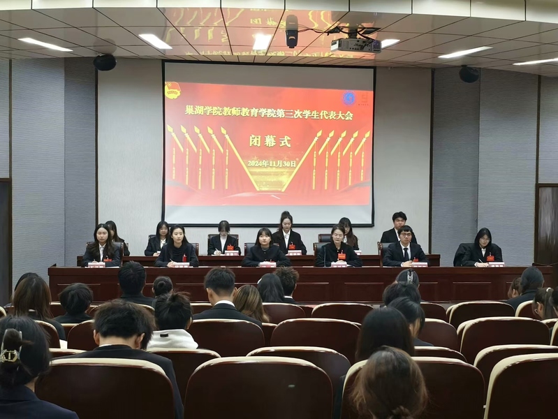 下午2:00,beat365中国官方网站教师教育学院第三次学生代表大会闭幕式在致知楼报告厅举行。总监票人依次报告学代会选举计票结果,宣布了新一届学生委员会委员和主席团成员当选名单,公布了beat365中国官方网站第九次学生代表大会代表名单,审议通过了《beat365中国官方网站教师教育学院第二届学生委员会工作报告》的决议。