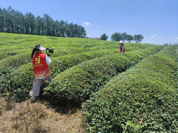 移步万亩生态茶园,葱郁茶垄随山起伏如碧波翻涌。团队深入茶山察看长势,与茶农交流种植技术革新与品牌建设挑战。特写镜头下白毫微显的茶芽,诉说着这片沃土的产业潜力。